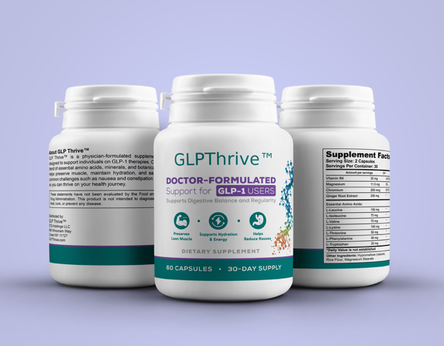That’s why we created GLPThrive™—a Physician-Formulated supplement designed specifically to support individuals on GLP-1 treatments. Every capsule combines clinically studied ingredients with real-world medical insight to address the unique needs of GLP-1 users.